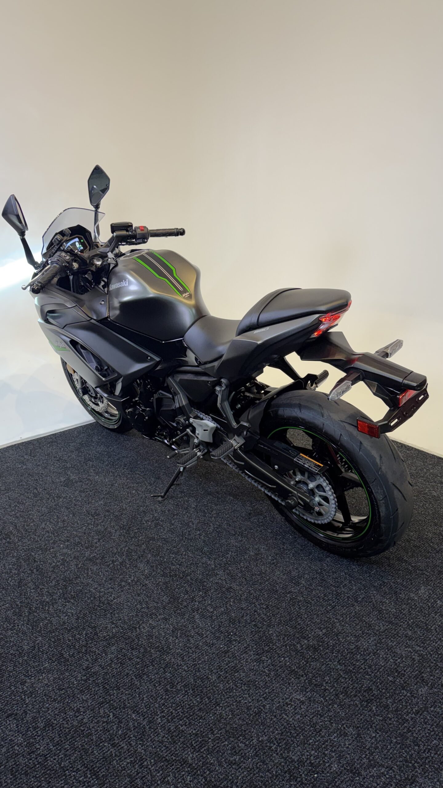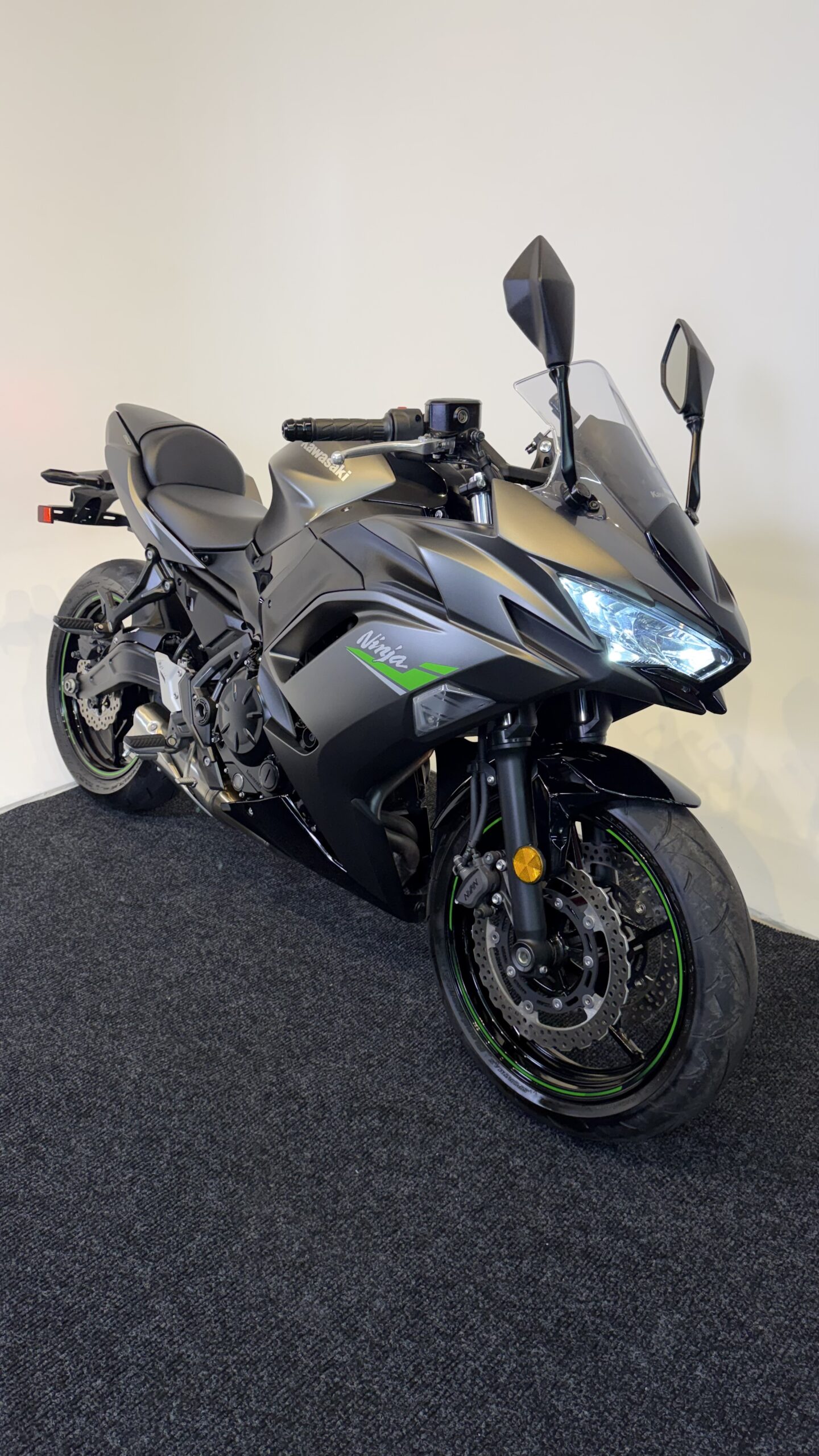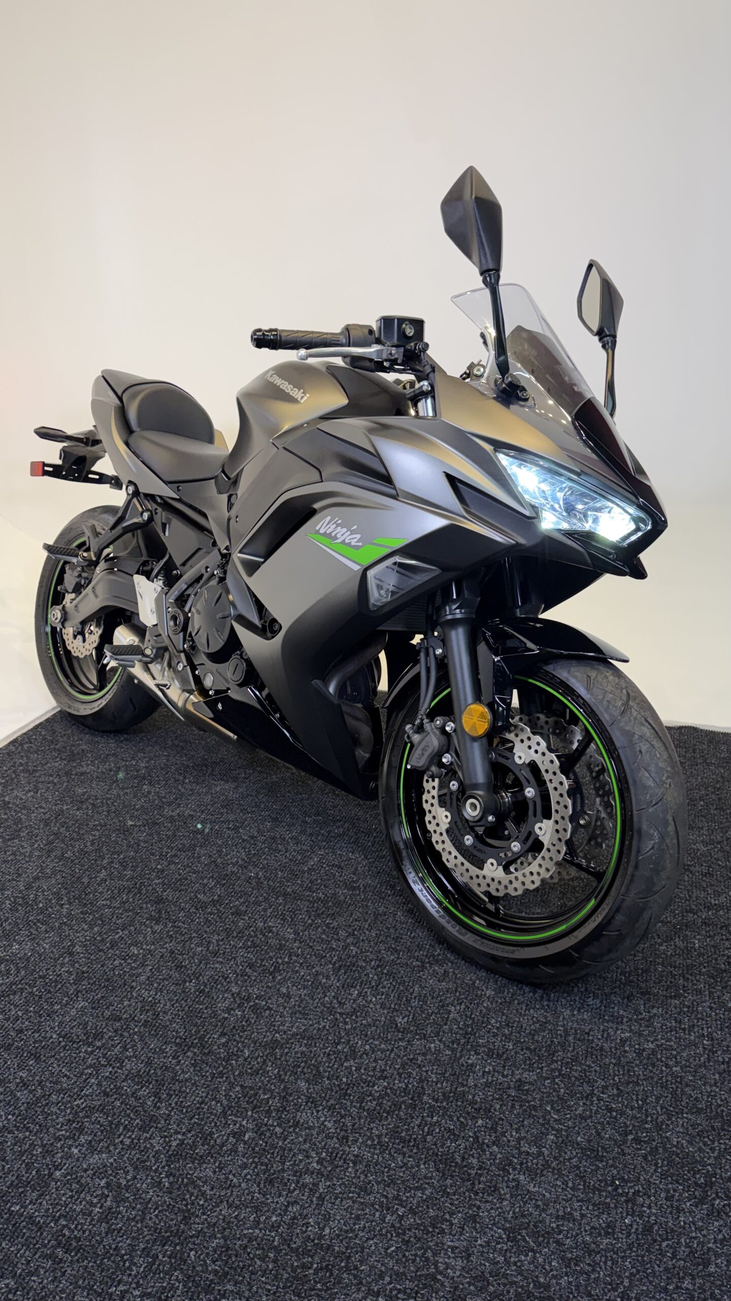 The 2024 Kawasaki Ninja 650 is a versatile middleweight sportbike that blends everyday comfort with sporty performance. Powered by a smooth and responsive 649cc parallel-twin engine, it delivers strong mid-range torque and easy-to-manage power for both new and experienced riders. Its sharp, aggressive styling reflects Kawasaki’s Ninja heritage, while the lightweight trellis frame and upright riding position provide excellent handling and comfort for daily riding. Equipped with modern features like traction control, ABS, and a TFT display with smartphone connectivity, the Ninja 650 offers a balanced combination of performance, technology, and practicality.